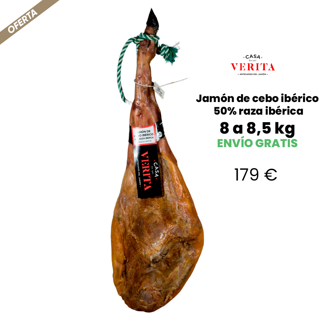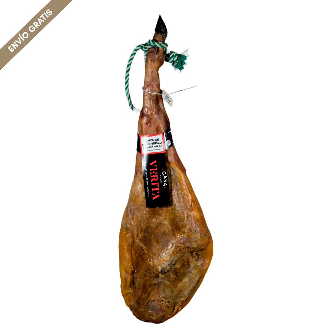 Grain fed ham 50% Iberian breed certified by Certifood. Weight 7 to 7.5 kg.