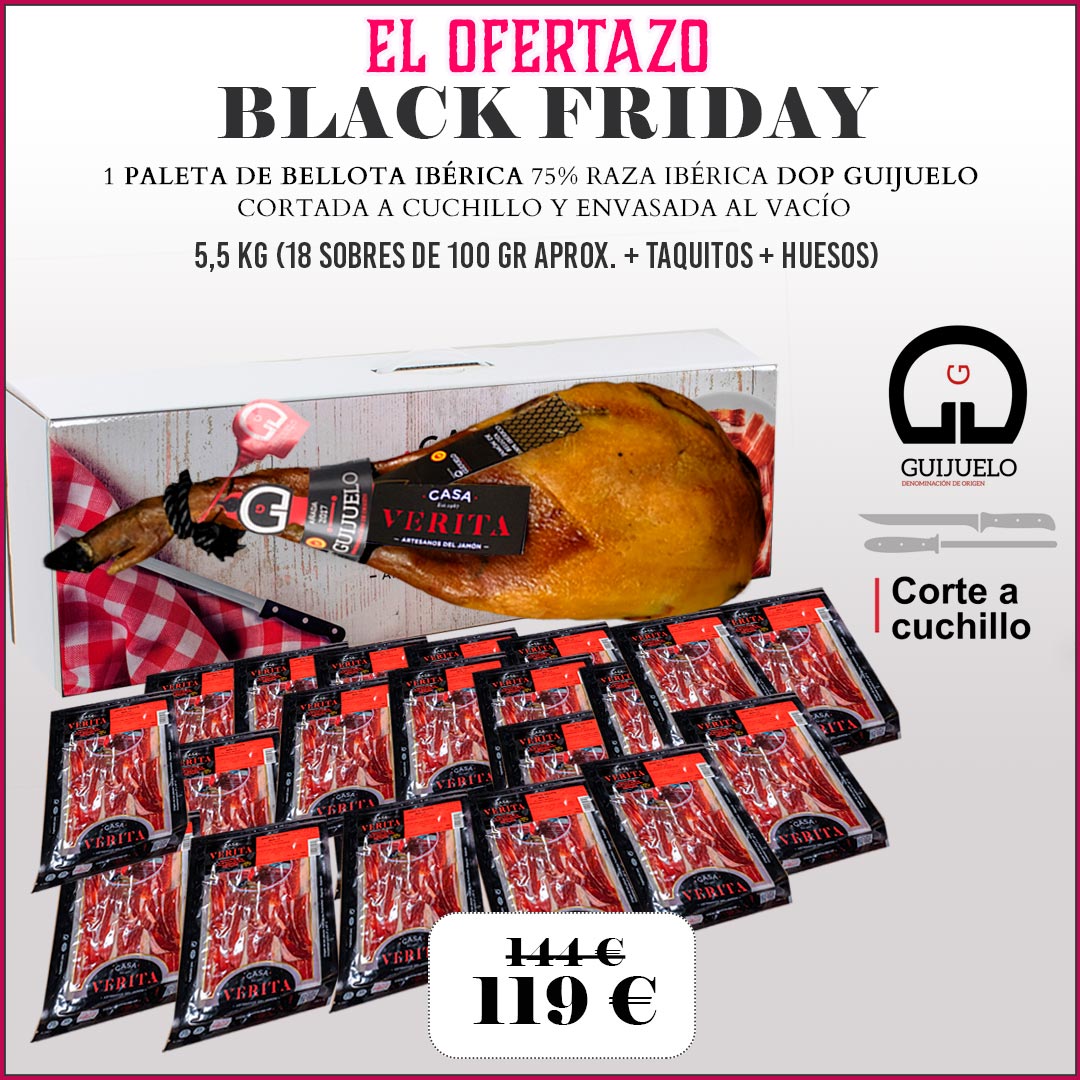 BLACK FRIDAY: PALETA DE BELLOTA IBÉRICA 75% RAZA IBÉRICA DOP GUIJUELO 5,5 kg CORTADA A CUCHILLO