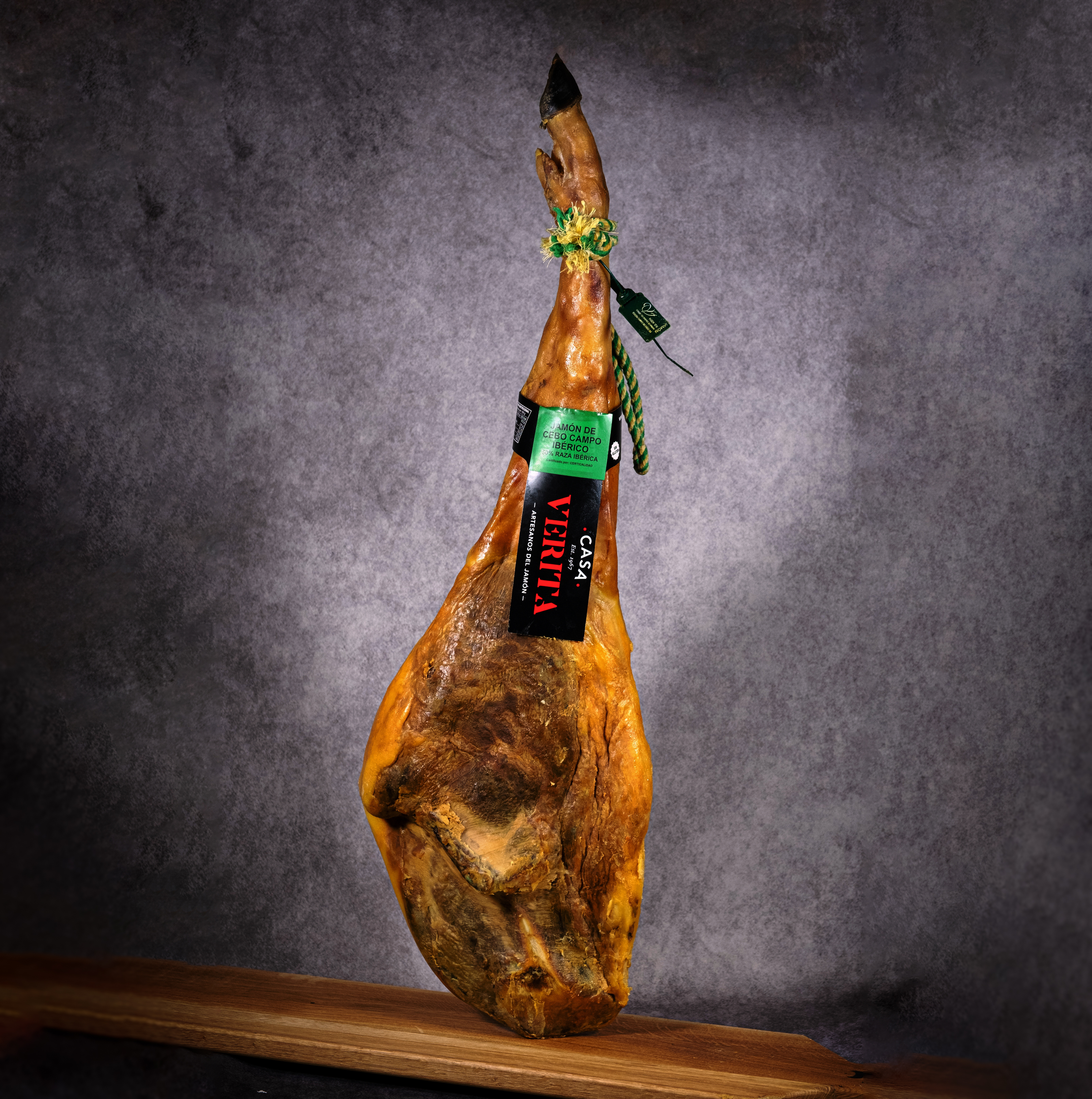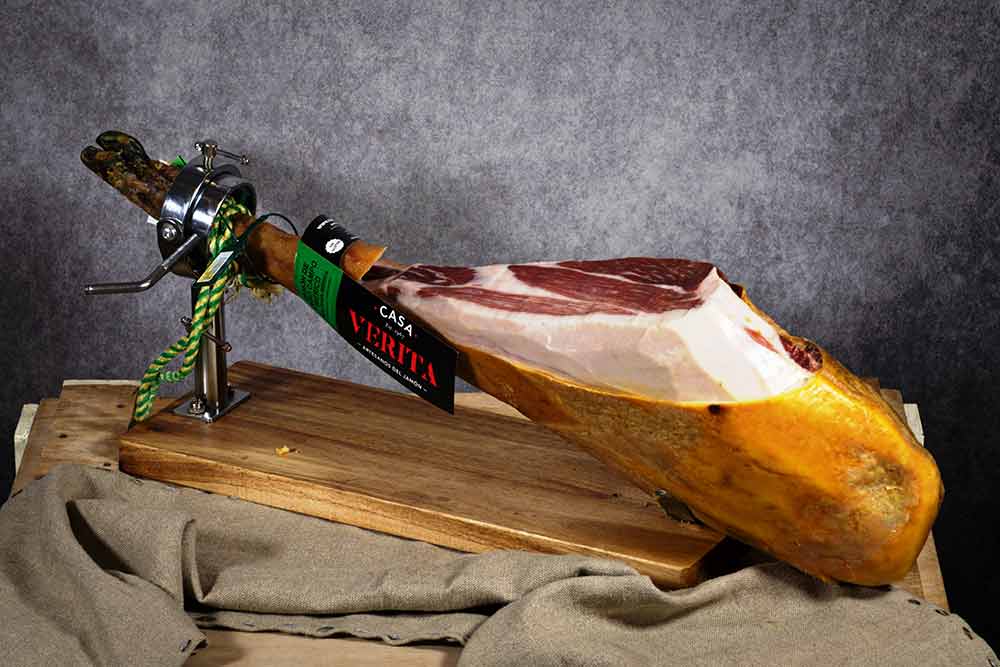 Grain fed country ham 50% Ibearian breed. Weight from 8 kg to 8.5 kg. Quality certified by Certicalidad, 33/36 months of natural curing.